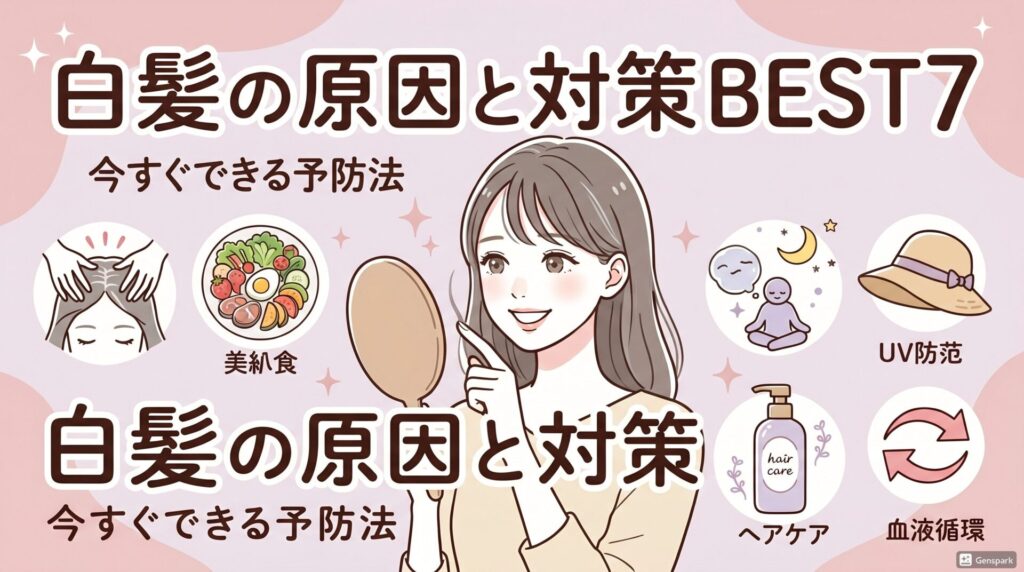 白髪の原因を正しく理解して、今すぐできる白髪対策をランキング形式でBEST7を紹介。食事・頭皮マッサージ・シャンプー選びなど、継続できる予防法を徹底解説します。 -
