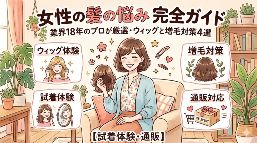 女性の髪の悩み完全ガイド|業界18年のプロが厳選・ウィッグと増毛対策4選【試着体験・通販】