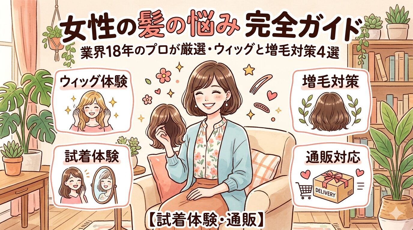 筆者はウィッグ専門メーカーに18年勤務し、店長として3,000件以上の髪のお悩み相談を受けてきました。抗がん剤治療を控えた方、円形脱毛症の方、加齢による薄毛に悩む方など、さまざまなお悩みに寄り添ってきた経験から、本当に勧められるサービスだけを厳選してご紹介します。